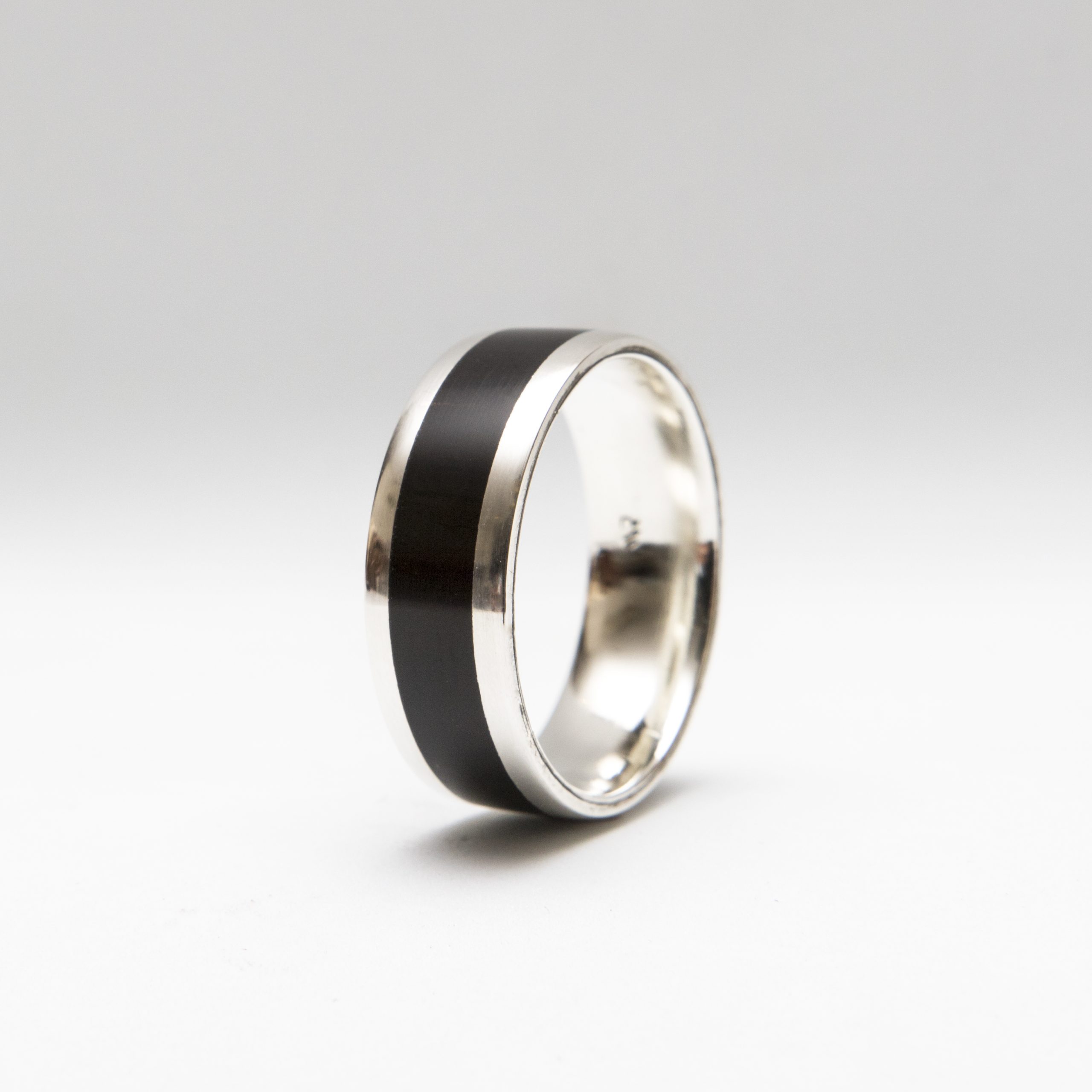 Epoxy Glassed Thick Dual Band Silver With African Black Wood | FREE SHIPPING