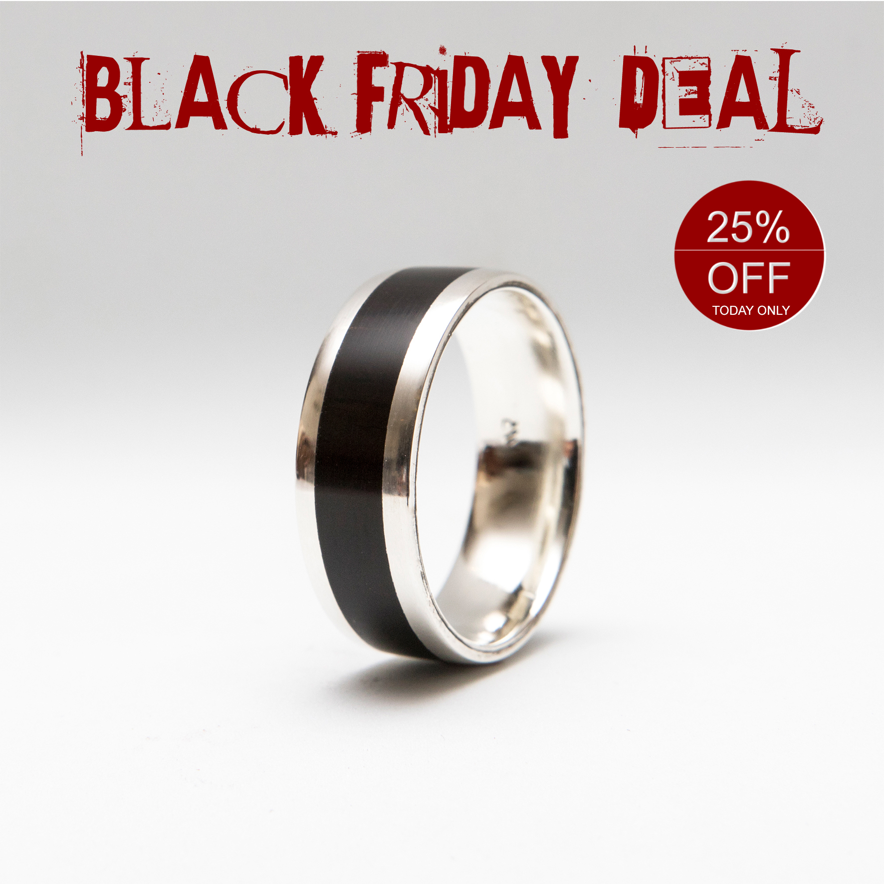 Epoxy Glassed Thick Dual Band Silver With African Black Wood | FREE SHIPPING quantity