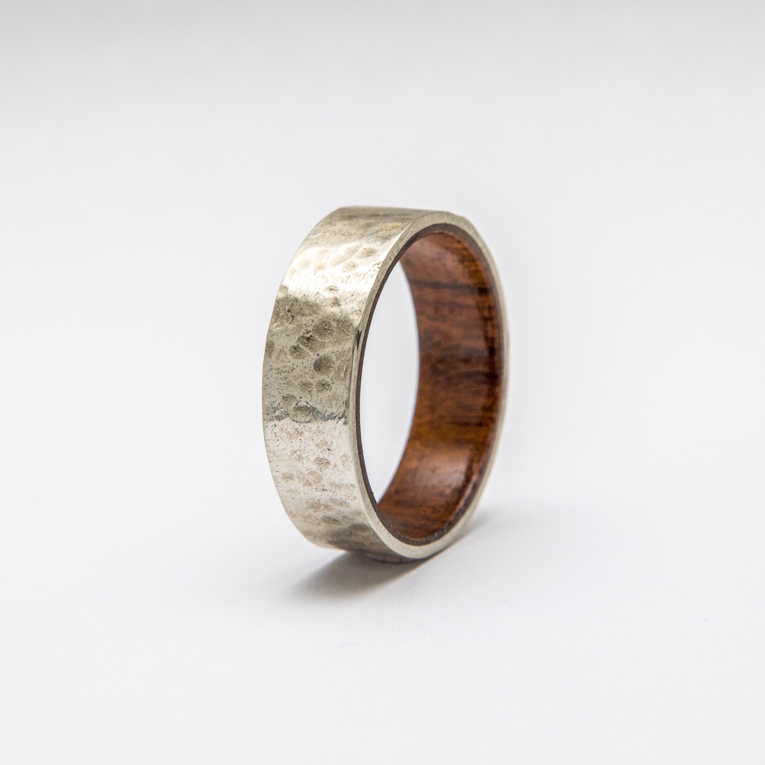 Beautifully hand crafted Hammered Silver sleeve with a Tambotie wood inside layer