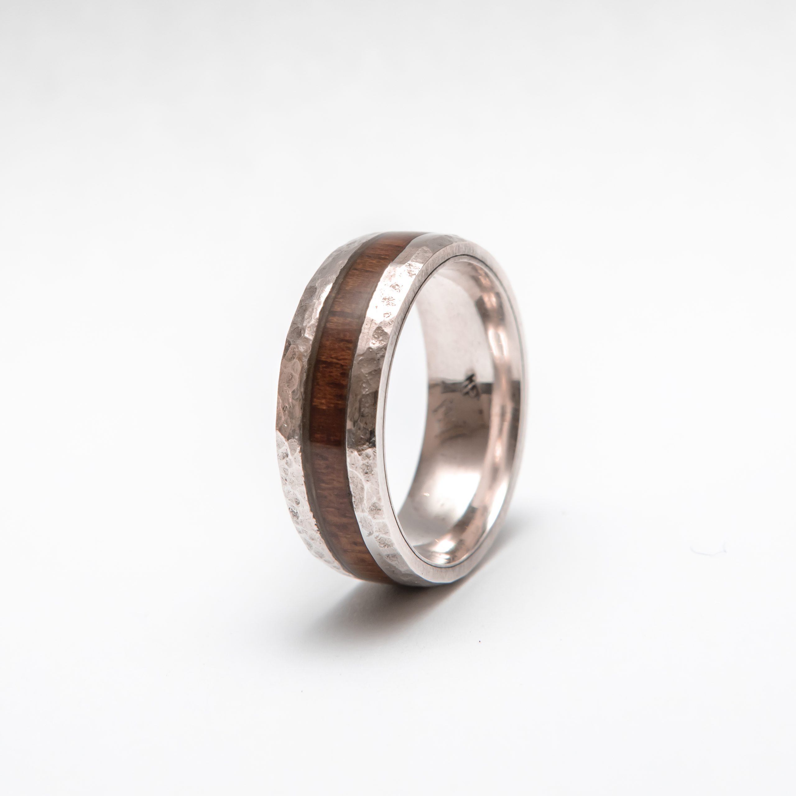 Hammered Thick Dual Band SIlver with Epoxy Glassed Mahogany Wood | FREE SHIPPING
